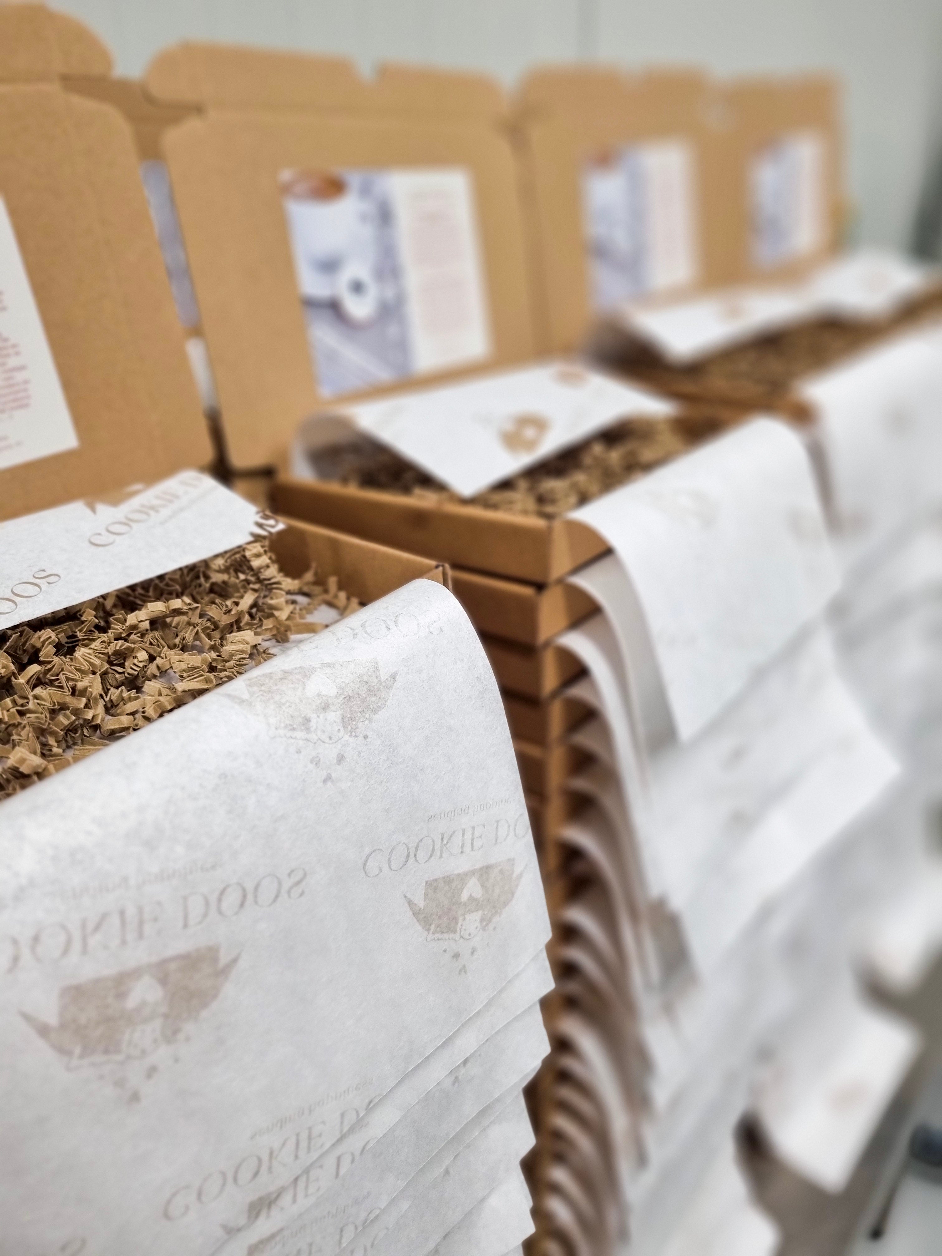 Standaard verpakken we onze koeken per stuk in een transparant zakje, maar er zijn nog veel meer opties.